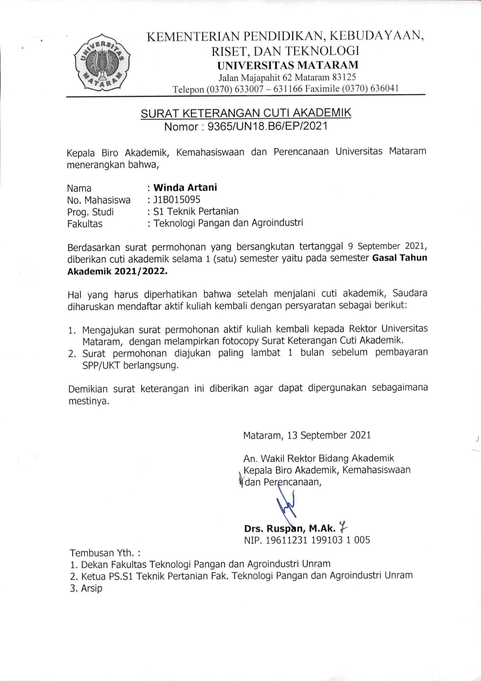 Tanggal Dokumen: 07/09/2023surat keterangan cuti akademik .an Winda Artani Fatepa Semester Gasal 2021