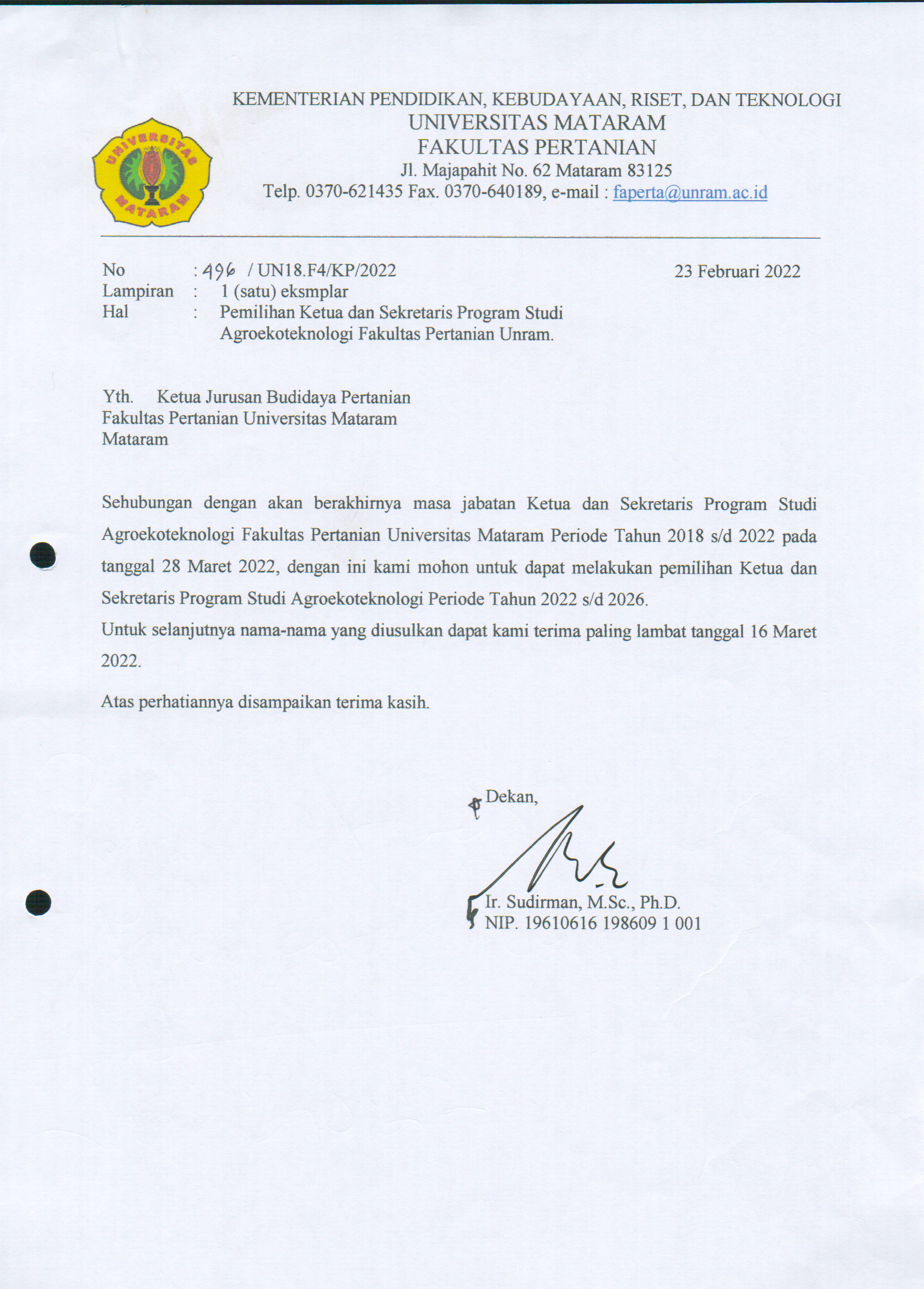 Tanggal Dokumen: 03/12/2021Pemilihan Ketua dan Sekretaris Program Studi Agroekoteknologi Fakultas Pertanian Unram