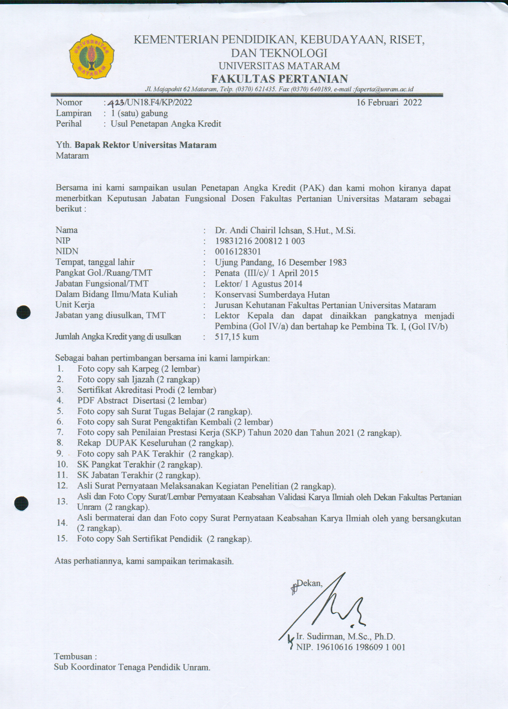 Tanggal Dokumen: 31/05/2022Usul Penetapan Angka Kredit a.n. Dr. Andi Chairil Ichsan, S.Hut., M.Si.
